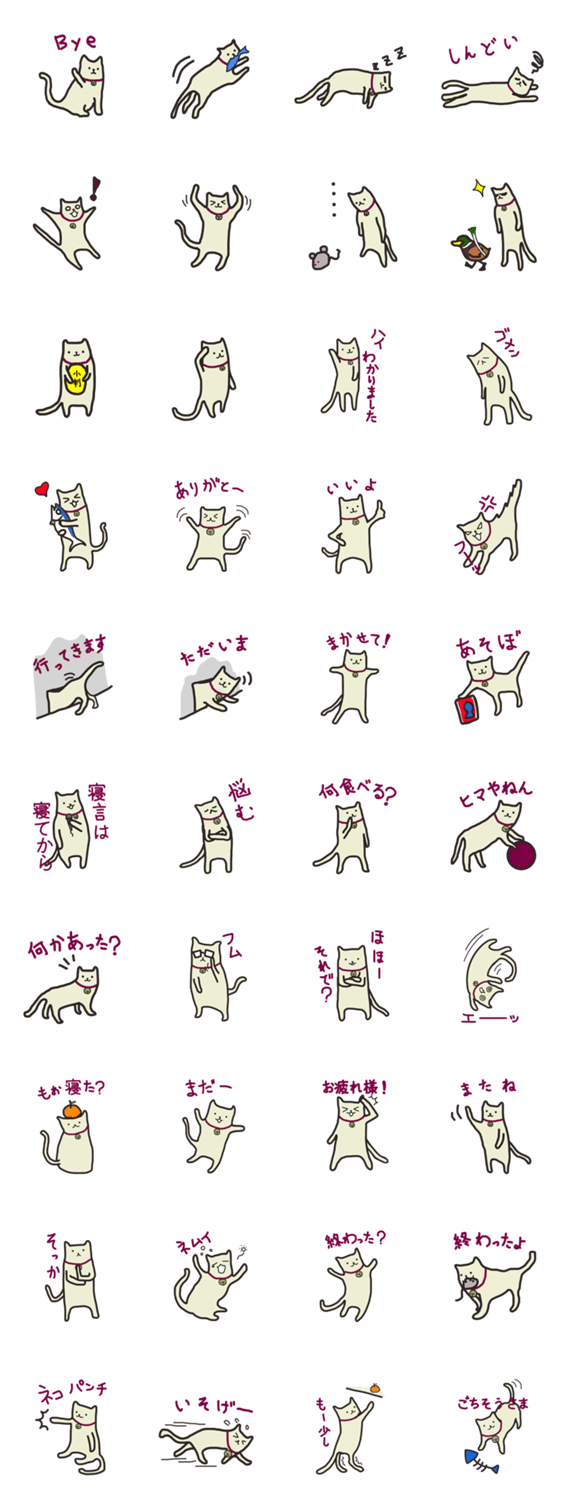 変てこでかわいい手書きネコのスタンプです。日常のやりとりをスタンプで気軽に表現できます。落書き風スタンプを是非使ってみてください。