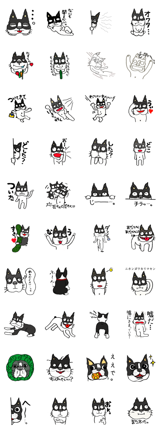 ボストンテリアのあずきとだいふくの日常会話に使えるスタンプです。所によりリアルフェイスあり。