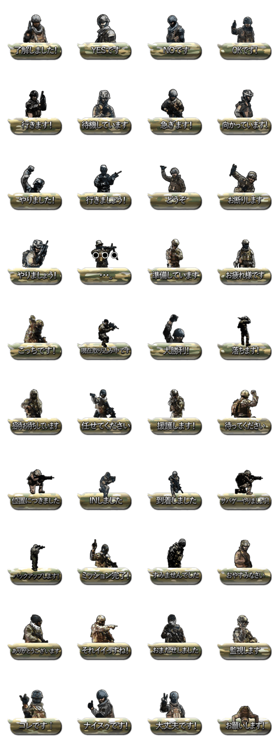 FPS・サバゲー(サバイバルゲーム)・TPS・ミリタリーや日常で使える丁寧な言葉の吹き出しスタンプです!とにかく、日常会話でもミリ画を使いたい方に便利です!