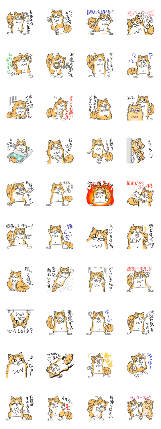 キジ白猫、きじろうの敬語スタンプです。先輩や上司など、ちょっと目上の方との会話にも使えます。