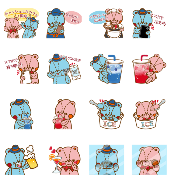 小さなぬいぐるみの国の男の子「リム」と女の子「ラム」。今回彼らは熱海キャッシュレスカフェの「1周年」をお祝いしてます。