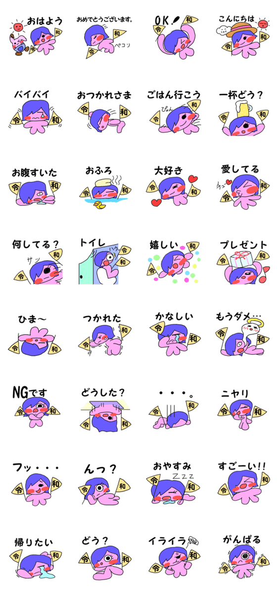 新年号の令和ちゃんが誕生しました。日常シーンで使いやすいスタンプです。