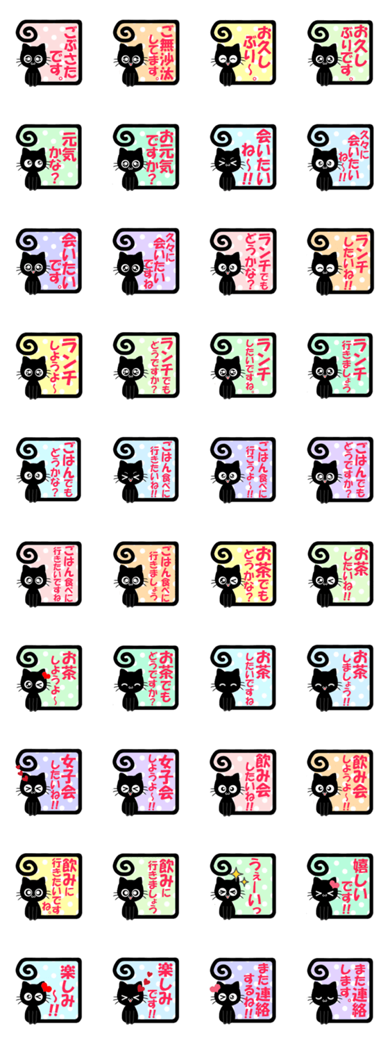 可愛い黒猫のスタンプ(お誘い) -LINEスタンプマニア