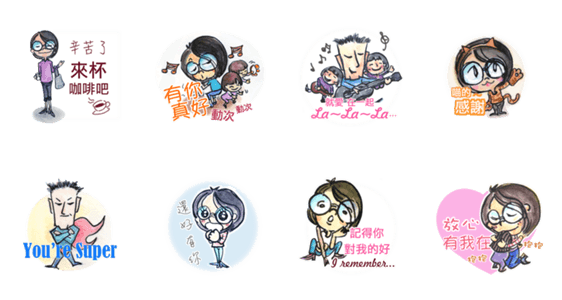 Happy days with my dear family. Many thanks to be with them. We share our daily life on stickers.
