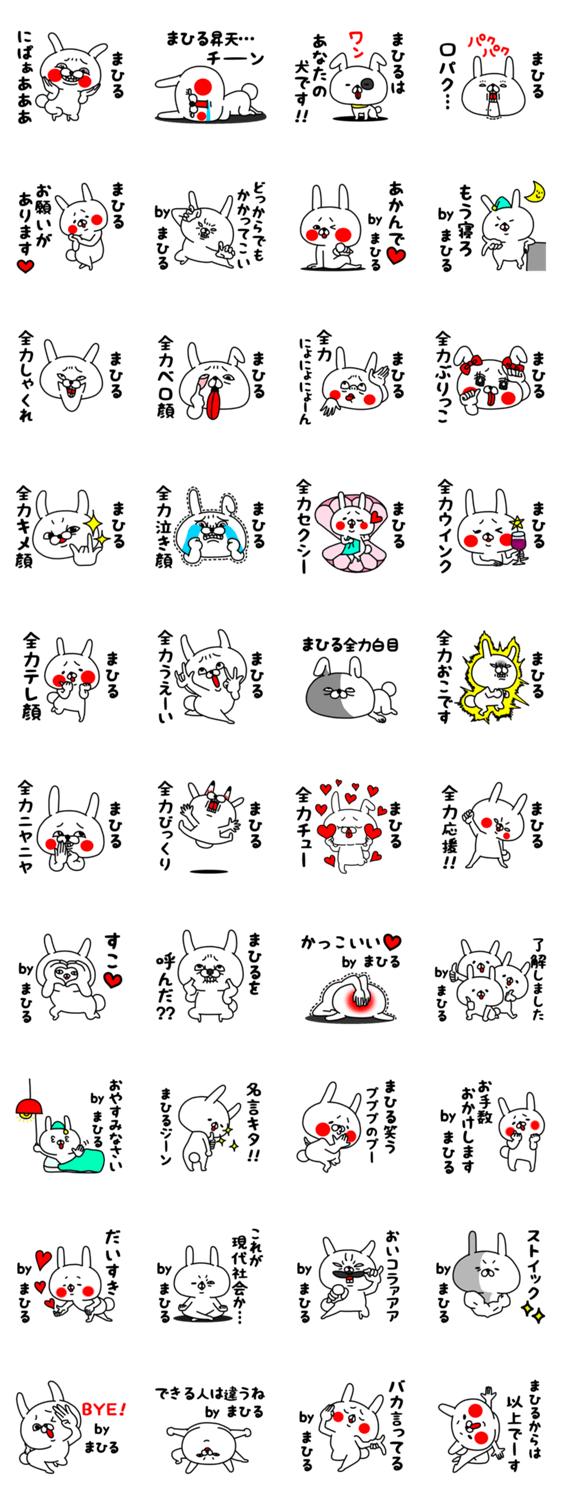 うぇーいうさぎの全力スタンプ第4弾。全力でうざい!!全力でおちょくる「マヒル」専用名前スタンプです。かわいいウサギで使いやすい。