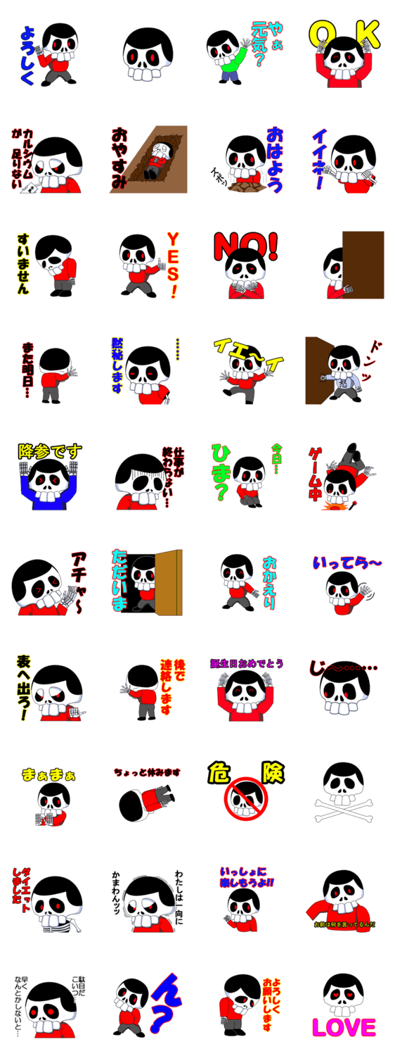出っ歯な骸骨「骨水ひろし」君 -LINEスタンプマニア