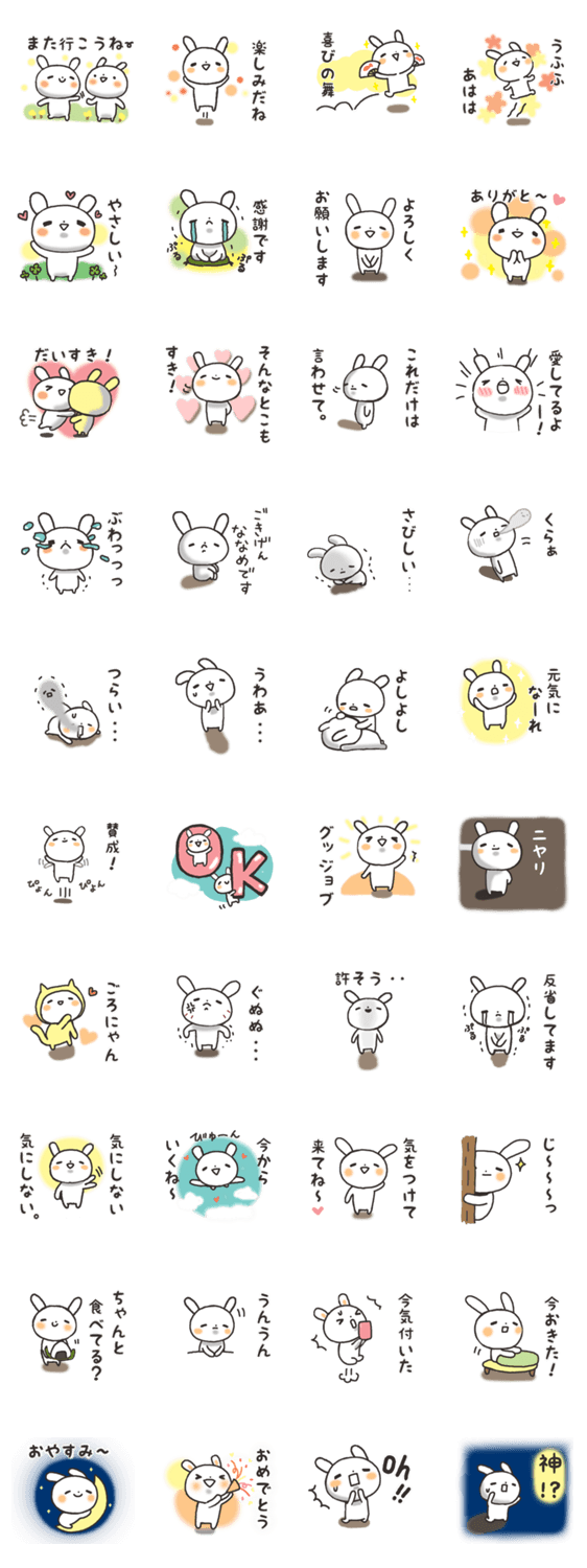 やさしいうさぎが話すやさしいことばのスタンプです