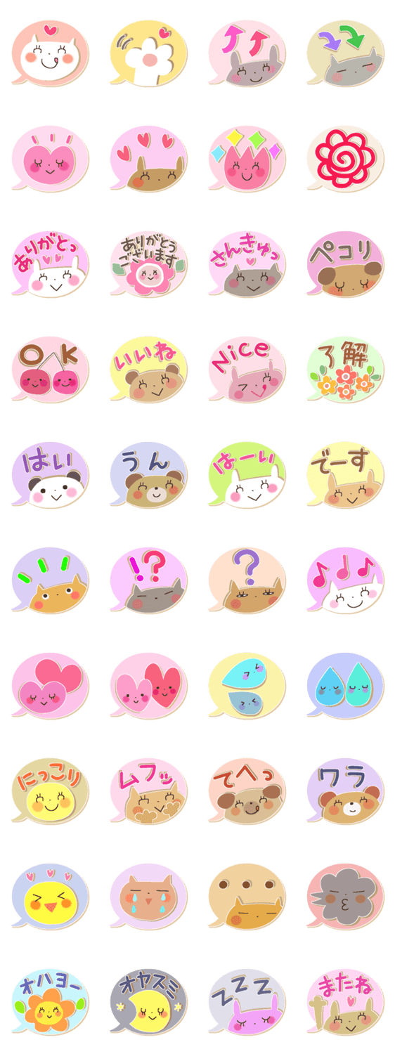 シンプルな優しいイラストと見やすい大きな文字で使いやすい40個。言葉が少なめの選びやすいスタンプです。