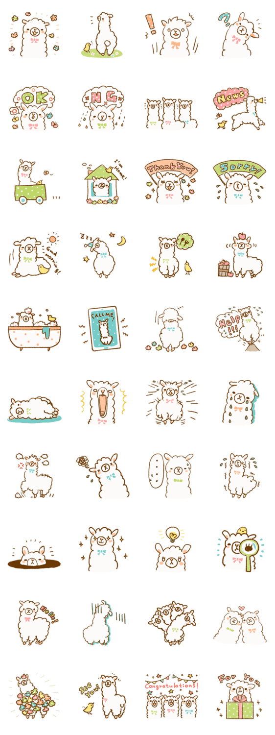 アルパカたちとおともだちのひよこのスタンプです。イラストレーター藤原柚のスタンプ第二弾。