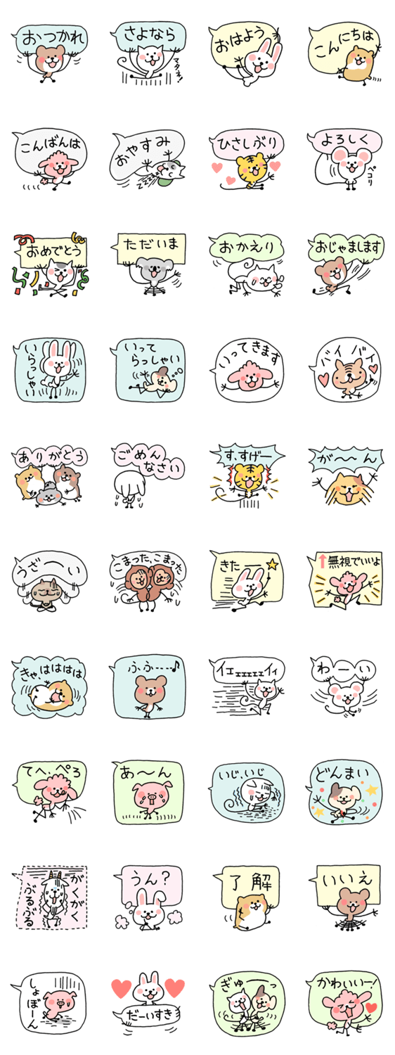 らくがきアニマル、略して「らくあに」です。かわいい動物たちがメッセージを運ぶスタンプです。