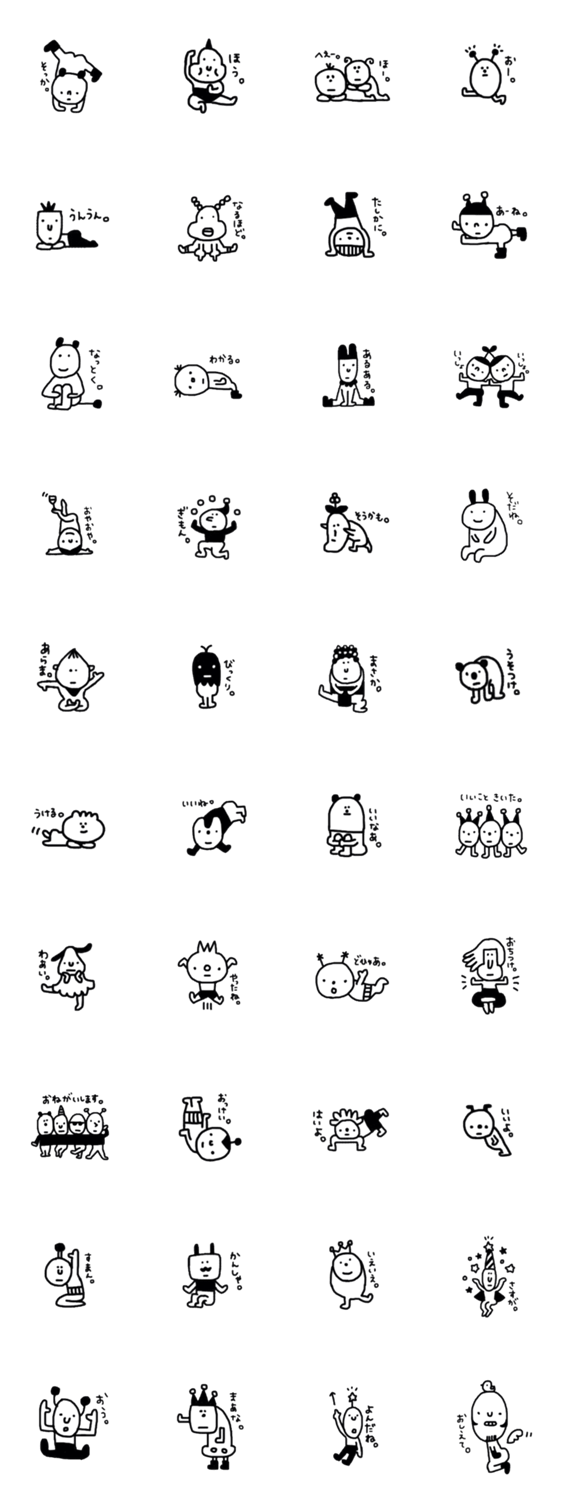 人間でもなく動物でもないへんてこ族。シュールなポーズやまぬけな顔がポイントです。ゆる~く適当にあいづちしてくれます。