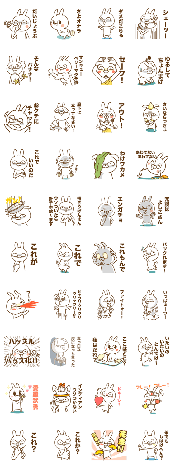 昭和の時代の懐かしい死語やアクション満載のうさぎのスタンプです。