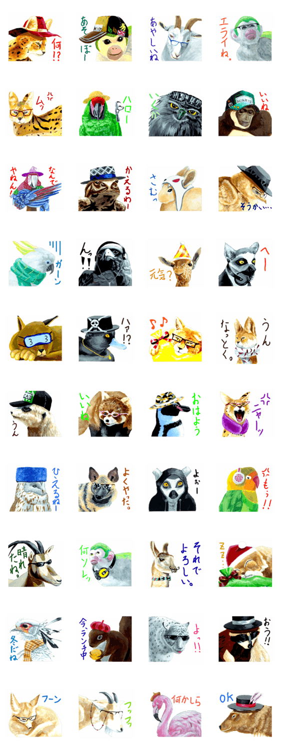 可愛い動物や、かっこいい動物をいろいろ描いたので、ぜひ自分の好きなスタンプを見つけてください!