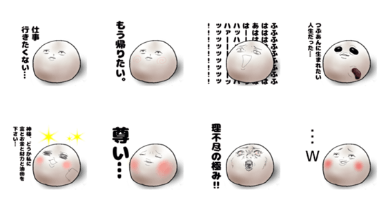 とっても可愛い人面大福ちゃんの狂気に満ち満ちたスタンプです。かわいいですね?