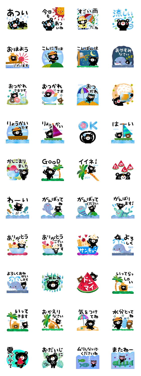 絵本みたいなブラクマシリーズの夏スタンプです。 日常会話を夏バージョンで♪ カラフルなスタンプで暑い夏を乗り切ろう!