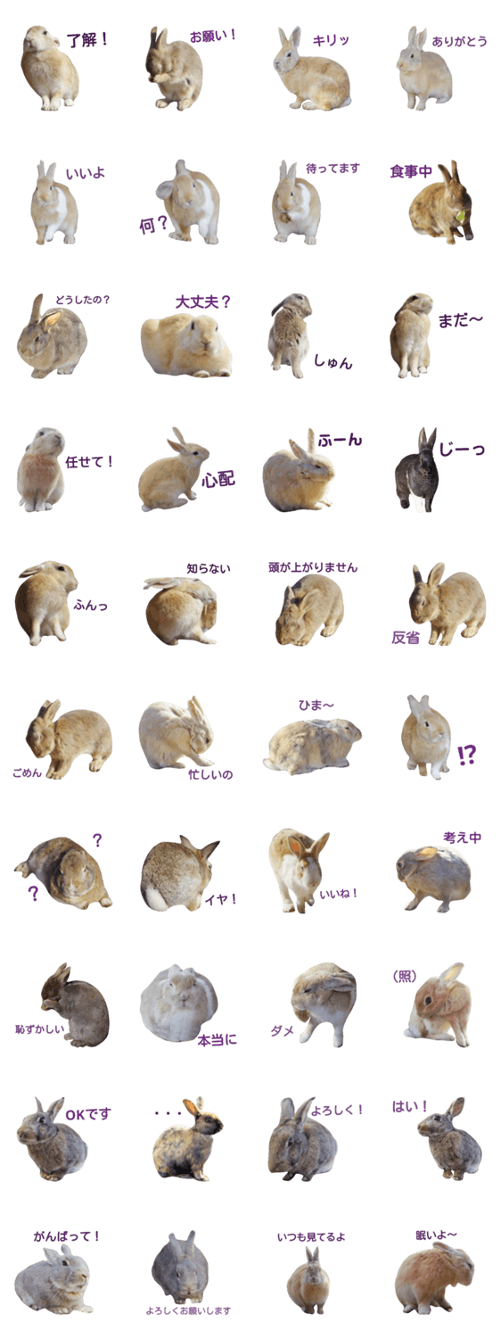 かわいいウサギたちの写真に一言追加したスタンプです。受信者を癒してあげましょう。