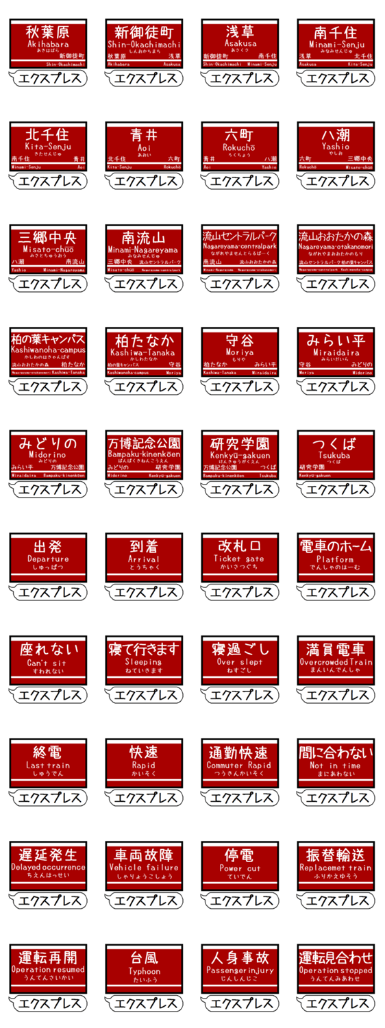 つくば特急 駅名 シンプル&気軽&いつでも -LINEスタンプマニア