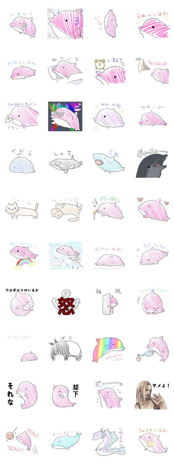 ママ見て!ピンクのイルカが空飛んでる! かわいいイルカのスタンプです。