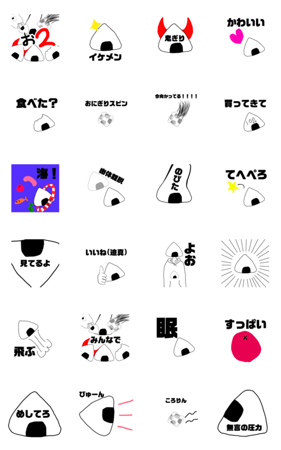 みんな大好きおにぎりスタンプ第2弾です。おにぎり大集合しちゃいます。令和を代表するおにぎりとは私のことです。おにぎり。