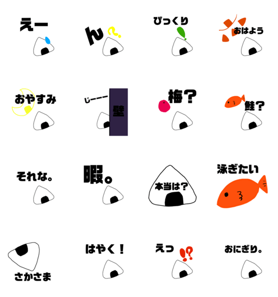 みんなが大好きなおにぎりをスタンプにしちゃいました。あなたは梅派?鮭派?私はツナマヨ派。
