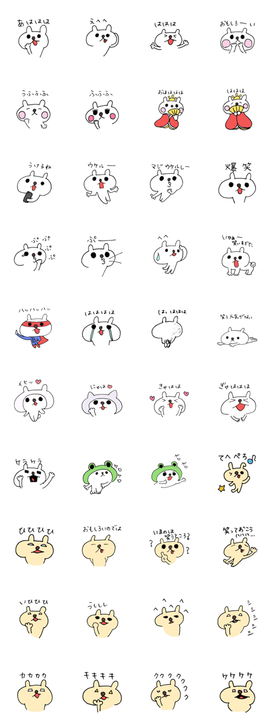 笑い方は十人十色。笑うスタンプで気持ちの表現のバリエーションが増えるおもしろいうさぎスタンプ。どうして人は違う笑い方をするの?