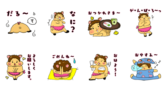 愛嬌たっぷりな表情に注目! ハブスターおばさんのスタンプです。