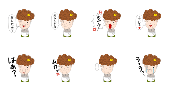 オカンこけしのキャラクターで子供へのちょっと笑える返答用スタンプ。