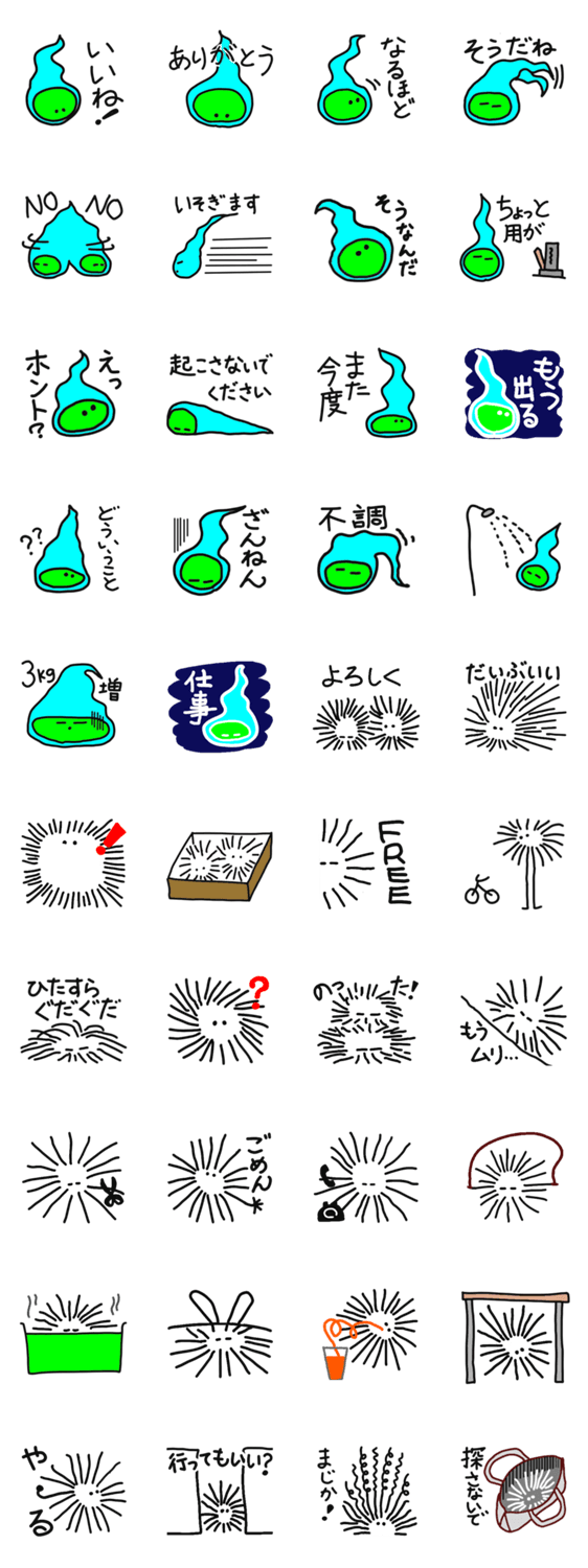 見たことある人にも無い人にも。「人魂」と「ケサランパサラン」のスタンプです!いつもあなたのそばに!
