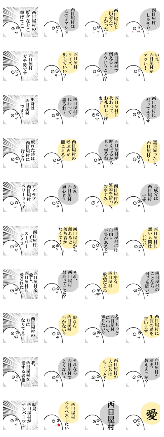 青森県西目屋村が大好きな人のためのスタンプです。住民の方も、そうでない方もどうぞ。