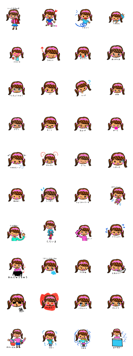 私は小学生の女の子です。 11歳です。 私の1日をスタンプにしてみました。 みなさん、ぜひ使ってみて下さい。