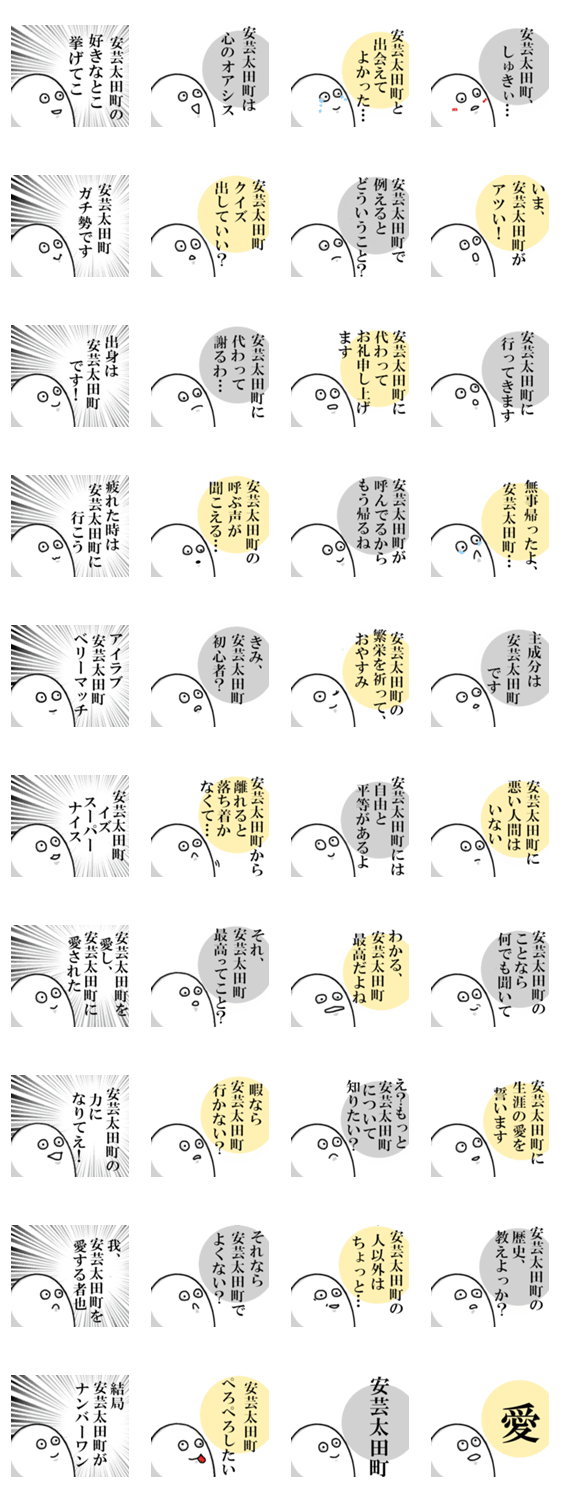 広島県安芸太田町が大好きな人のためのスタンプです。住民の方も、そうでない方もどうぞ。