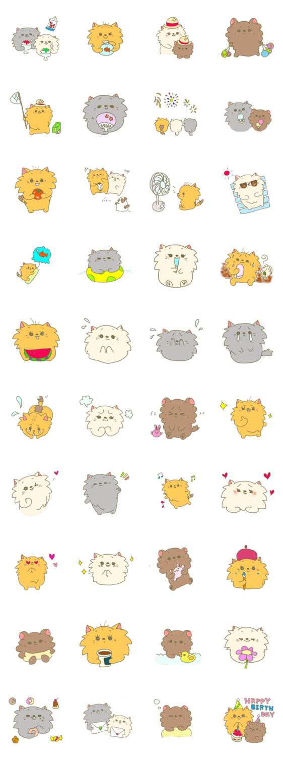 ポメラニアンのぷりんさんとその仲間たちの、夏に使って欲しいスタンプ第1弾です。