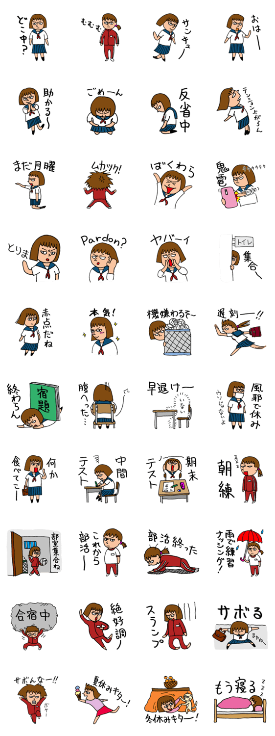 日本の女子中高生の生活をリアルに表現したスタンプです。学校生活で素早く返事する時に使ってください。