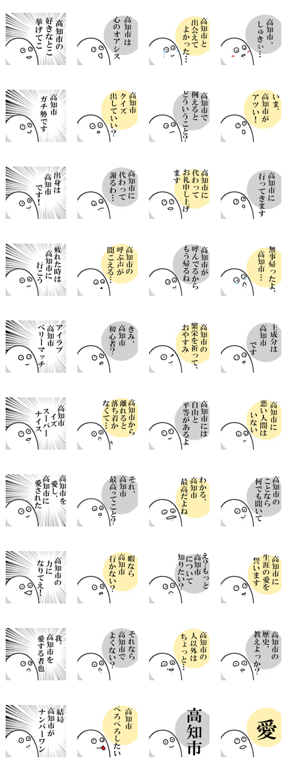 高知県高知市が大好きな人のためのスタンプです。住民の方も、そうでない方もどうぞ。