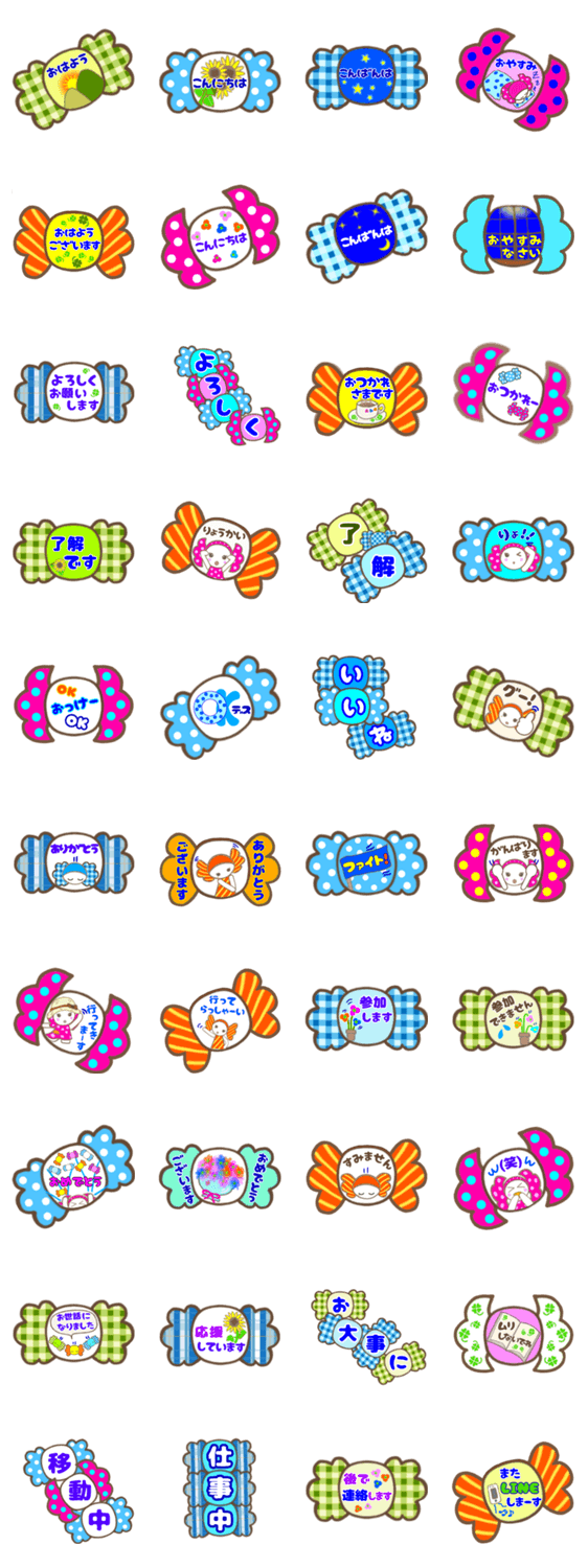 キャンディー付箋での挨拶や即答のスタンプです。毎日使ってください。