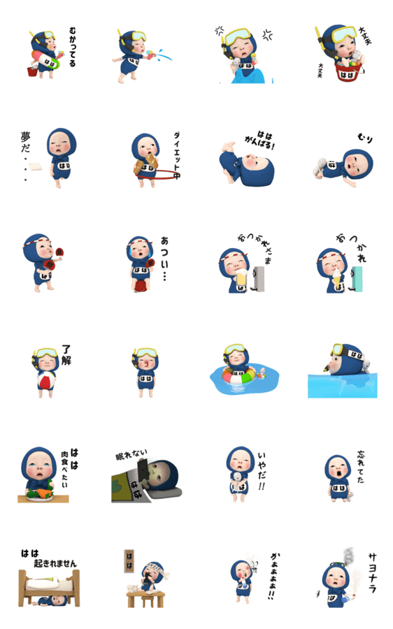 ブルータオル#1【はは】動く名前スタンプ‼ レッドタオルシリーズの夏バージョン、【はは】専用の動く名前スタンプです