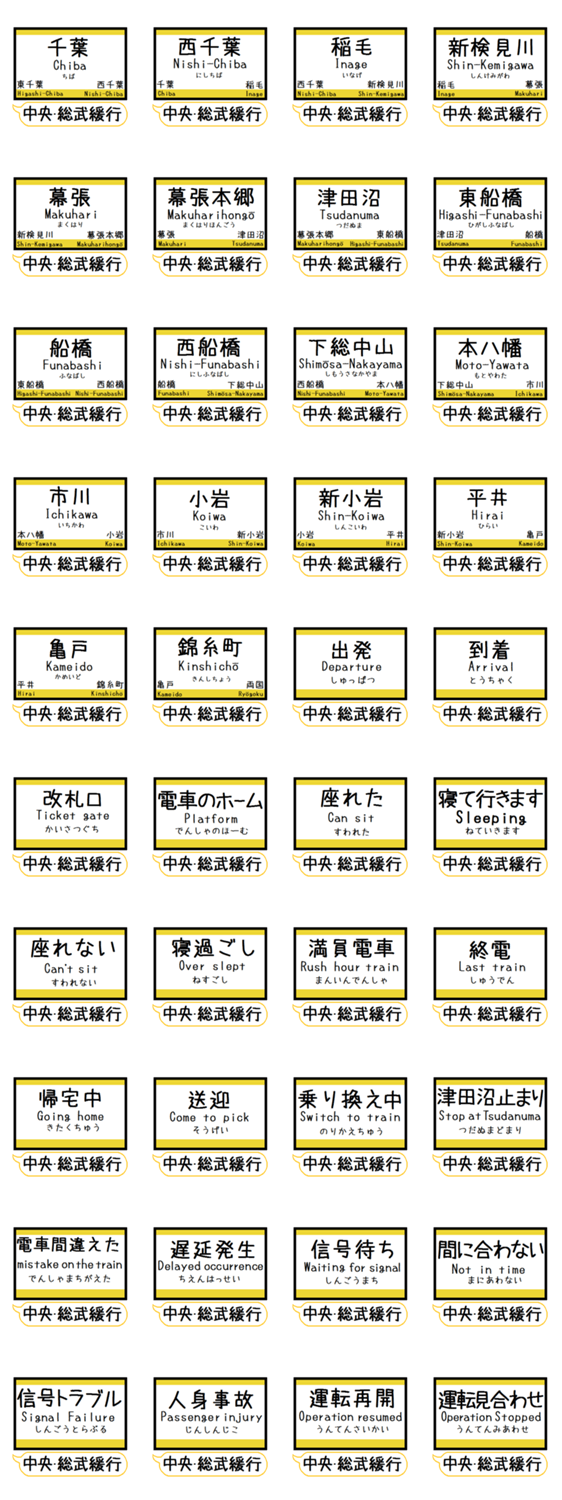中央・総武緩行線2 駅名 シンプル&いつでも -LINEスタンプマニア