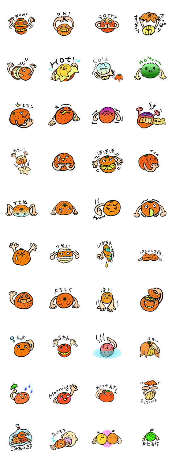 顔みかんたちのお返事スタンプです。ちょこっとした隙間に使ってね。