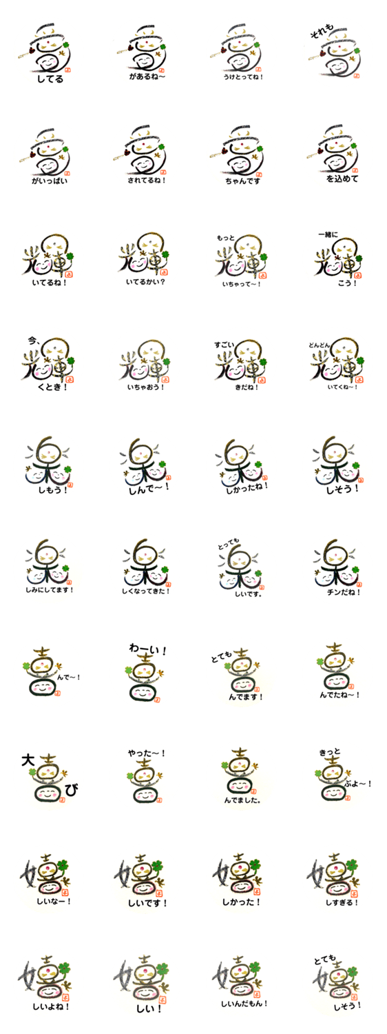 ハピスマ文字「愛、輝、楽、喜、嬉」 -LINEスタンプマニア