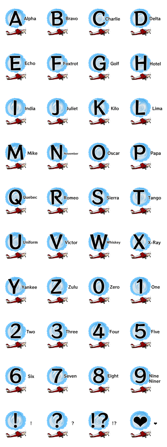 無線通話で出てくる、フォネティックコード! ラインを使いつつ覚えれる♪ 空友・飛行機仲間で好きな機体番号を言い合うのも◎!