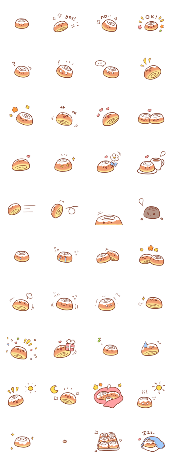 可愛くて甘いシナモンロールの日常用スタンプ。