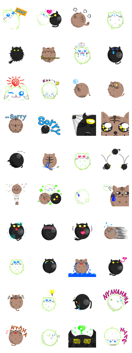 ねこきゅうは、泣いたり笑ったり怒ったり、自由気まま。イラストだけのものも多いから、好きに使ってくださいにゃ。