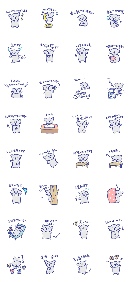 お仕事をがんばる、ゆるいコアラくんのスタンプ。お仕事、バイト、学校、その他いろいろ、あなたの生活の一コマをゆるコアラくんとともに。