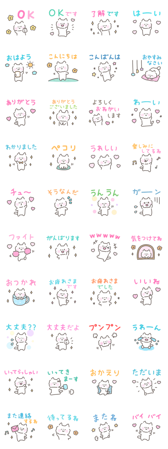ふんわりしたカラフルな手書きポメラニアンのスタンプです♪よく使う挨拶や言葉を集めました☆