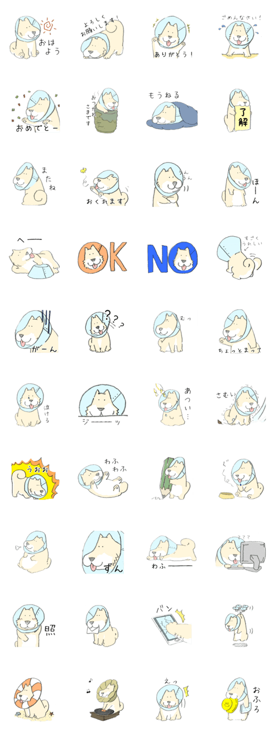 エリザベスカラーがついてもポジティブな犬「えりざべす。」のスタンプです。日常会話をゆるくします。たぶん。(修正版)