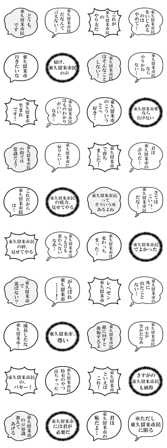 東久留米市民が普段思っていることを代弁するスタンプです。