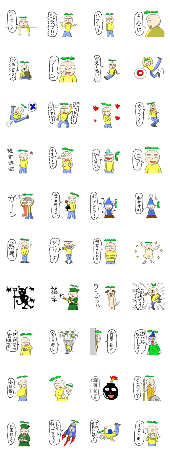 頭頂部から芽吹いている葉っぱくんのスタンプです