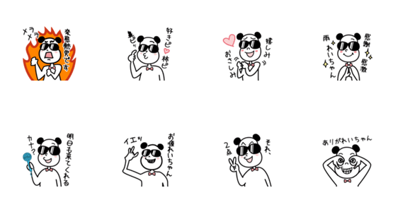 面長パンダ「れいちゃん」が日常でよく使う、口癖を集めたPOPなスタンプです。