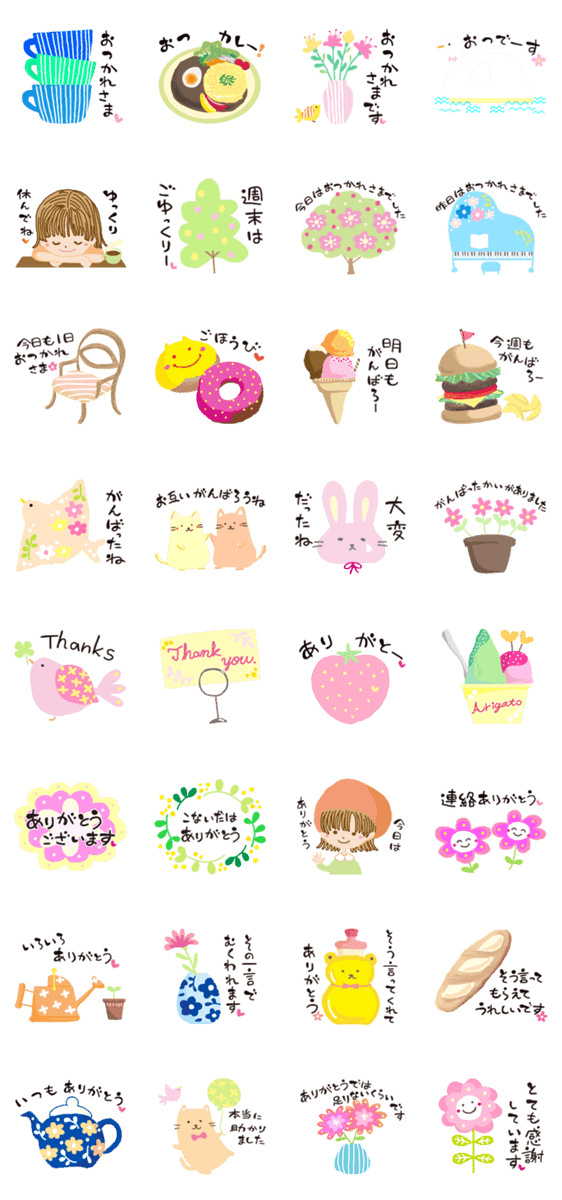 使う機会が多い「おつかれさま」と「ありがとう」のスタンプです。大切な人にねぎらいと感謝を伝えよう!