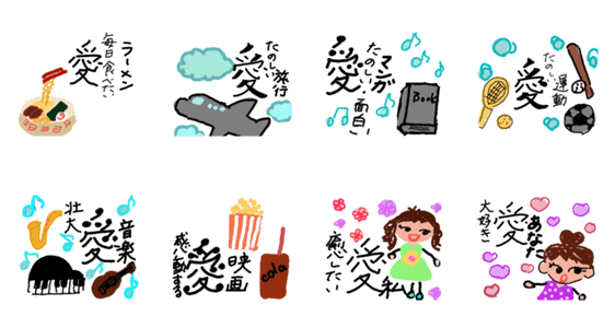 すごく好きなこと、夢中になってることを愛という文字で伝えるスタンプにしました。